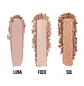 ¡Es la hora dorada en cualquier momento con los iluminadores de Rosy! Logre un brillo fácil, de apariencia natural y duradero. Incluye 1 iluminador en crema y 2 iluminadores en polvo.